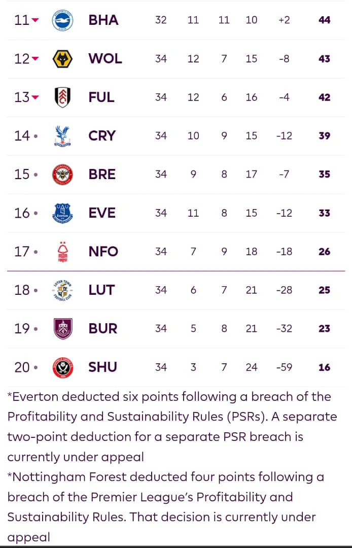Here is the premier league table after today's fixtures