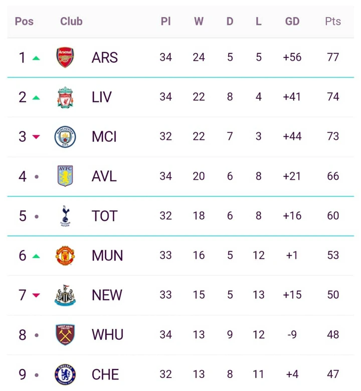 These results cause significant movement in the Premier League standings. Liverpool's lead is diminished, and they may find themselves at third place if Manchester City win away at Brighton on Thursday. Manchester United's victory solidifies their position in the European qualification places, potentially setting up a thrilling battle for Europa League spots.